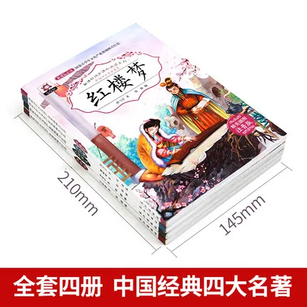 Free Shipping Chinese China four classics masterpiece books easy version with pinyin picture for beginners: Journey to the West,Three Kingdoms