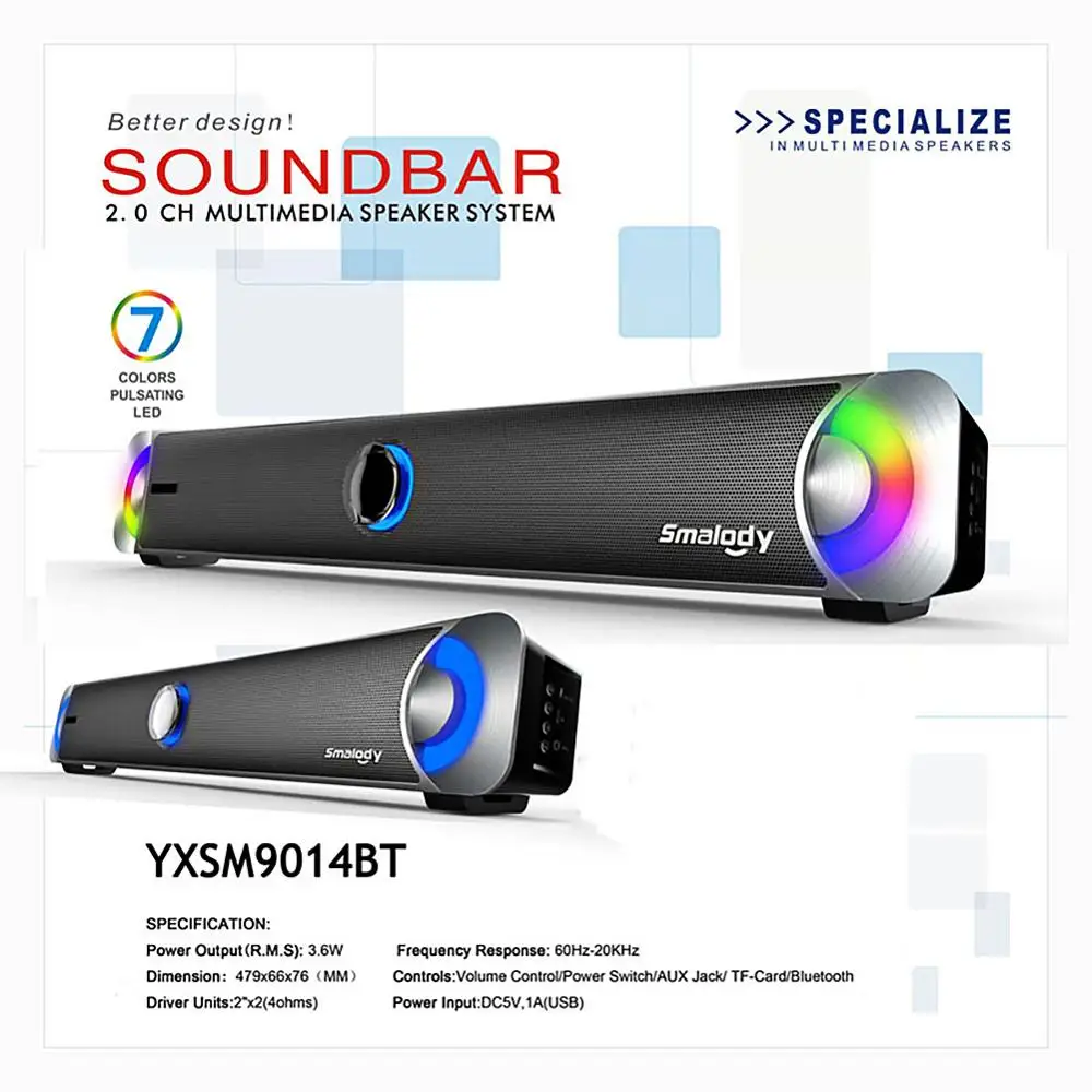 Get Black 9014BT Wireless Bluetooth Speaker Colorful LED Computer Speaker 10W Gaoyin Sound Blaster Soundbar Stereo USB Powered