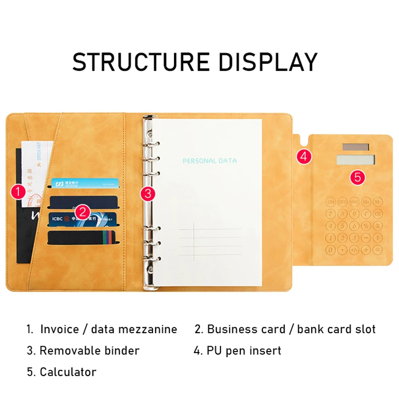 Get A5 Faux Leather Notebook Spiral Personal Dairy Planner Organizer Notepad Travel Agenda Manager Padfolio Folder Calculator