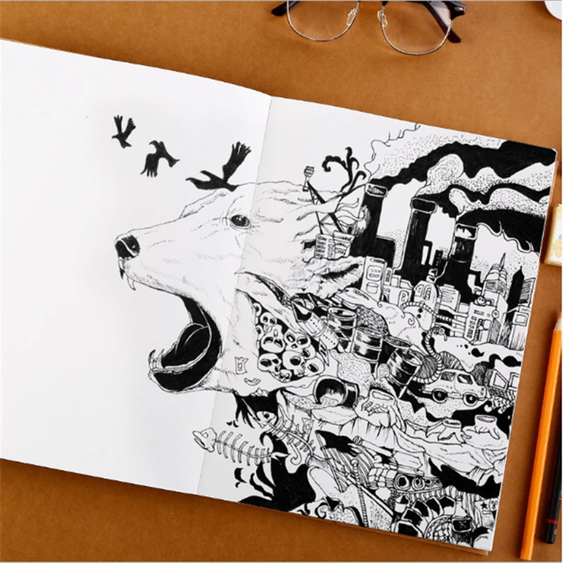 Home » Accounting Supplies , Books , Filing Products , Painting Supplies , Paper » New A4 Hand-Painted Travel Sketchbook Kraft Cover Paint Paper Color Lead Needle Pen Painting Diary Journal Student Notepad Memo