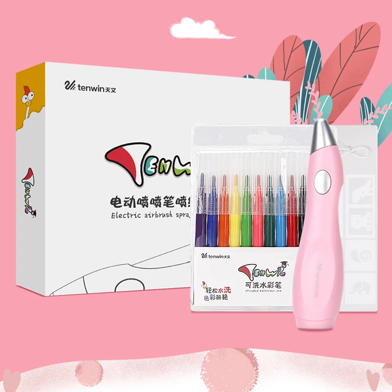 Home » Accounting Supplies , Books , Filing Products , Paper , Pencils , Pens » Promo Tenwin 2 Colors Electric Spray Art Pen Airbrush Marker Set Magic Pen Air marker sprayer Childrens Kids Toy Christmas Gift