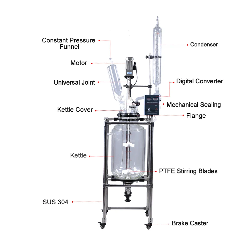 Free Shipping Laboratory Equipment 20L Lab Double Jacket high Pressure Chemical Glass Reactor