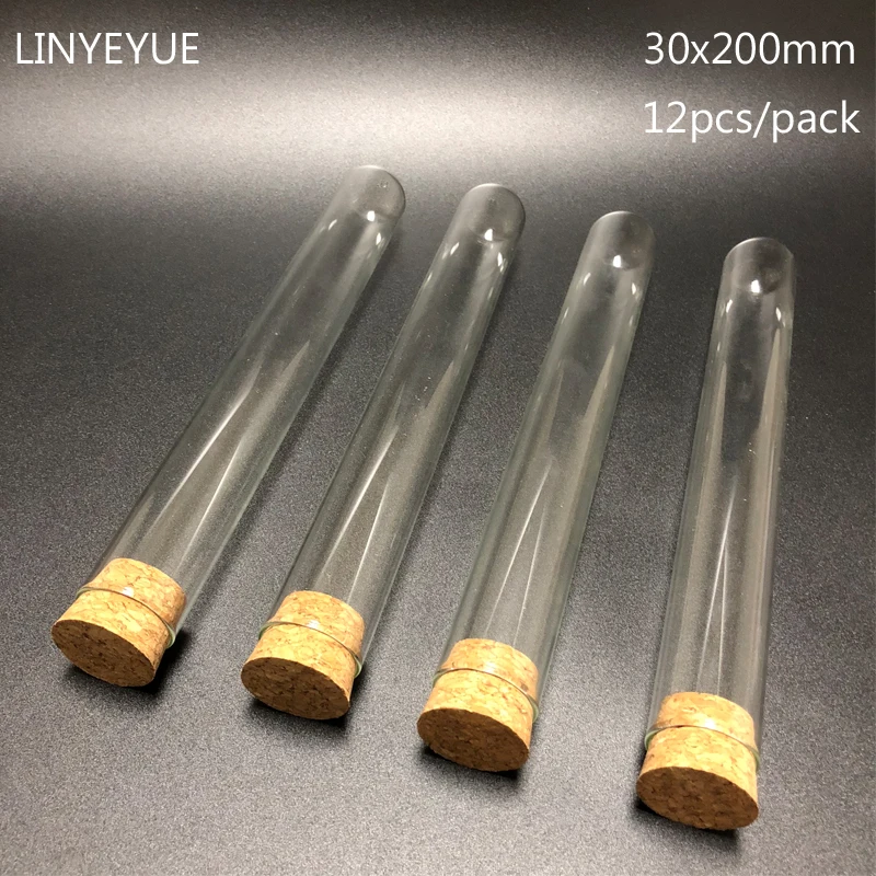 Promo 12 pieces/pack 30*200mm Lab U-shape Bottom Glass test tube with Cork Stopper Laboratory Glassware Glass tube with cap