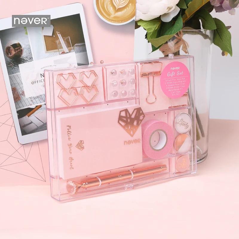 Special Never Rose Gold Series Stationary Set Metal Pen Memo Pad Push Pins Washi Tape Paper Clips School Office Supplies Gift Stationary